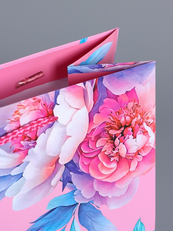 - Дизайн, символизирующий расцвет: Изображение бутонов и цветов на розовом фоне ассоциируется с ростом, красотой и обновлением. Такой пакет становится уместным дополнением к подарку на 8 Марта, 14 Февраля или день рождения, подчеркивая светлые пожелания.