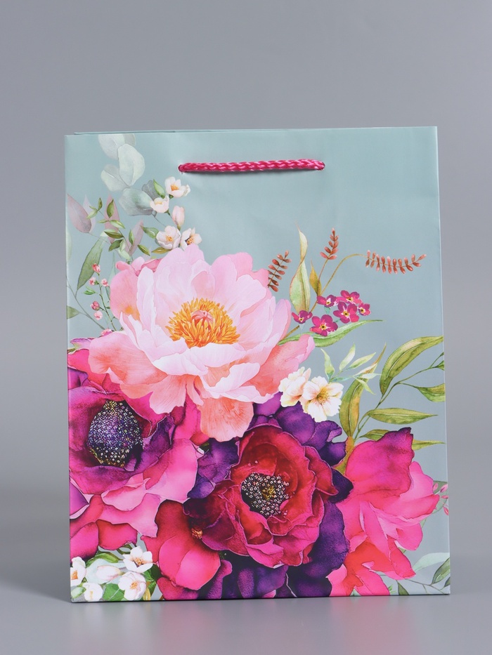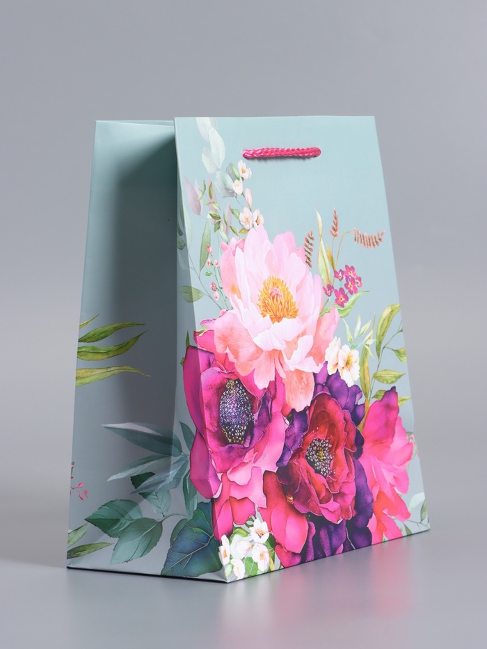 Пакет подарочный ламинированный «Цветочный комплимент», серый с розовым, 18×22.3×10 см
