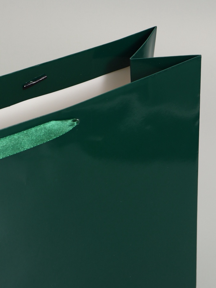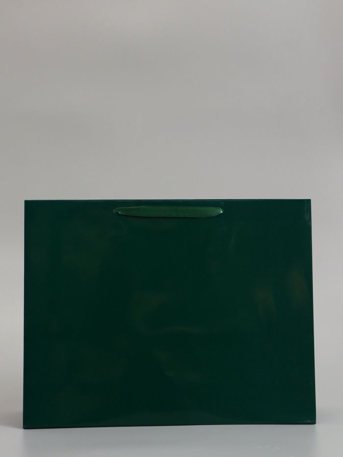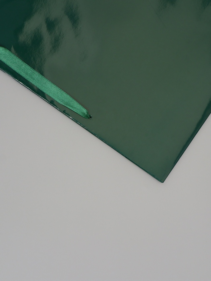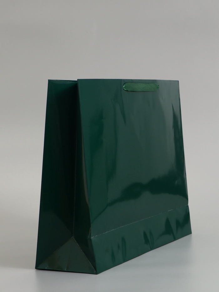 Изумрудный ламинированный подарочный пакет (40×31×11.5 см) – горизонтальный пакет большого размера для крупных подарков. Ламинация придаёт бумаге глянцевый блеск и защищает от влаги, а изумрудный цвет выглядит торжественно.
