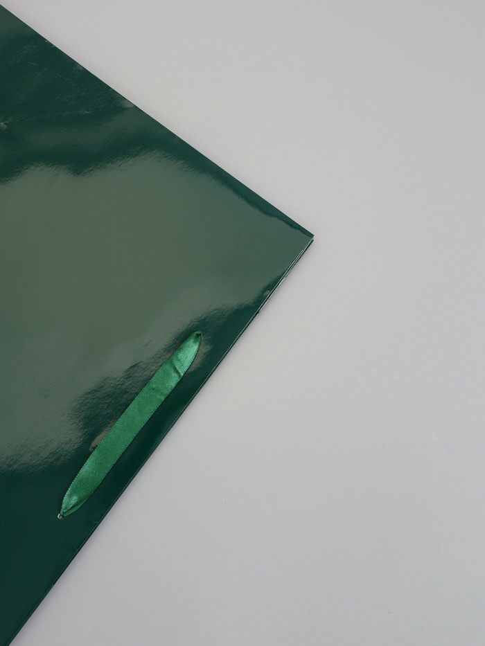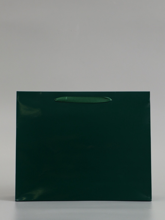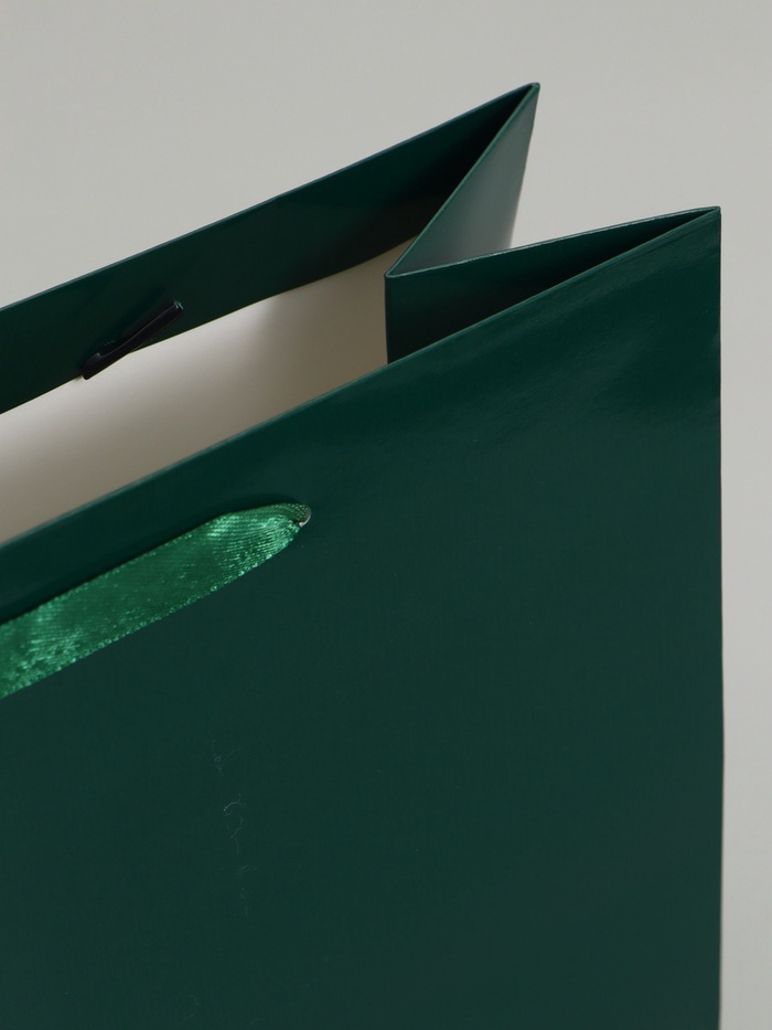 Изумрудный ламинированный подарочный пакет (32×26×12 см) – горизонтальный пакет увеличенного среднего размера для объёмных подарков. Ламинация придаёт бумаге глянцевый блеск и защищает от влаги, а изумрудный цвет выглядит благородно и празднично.