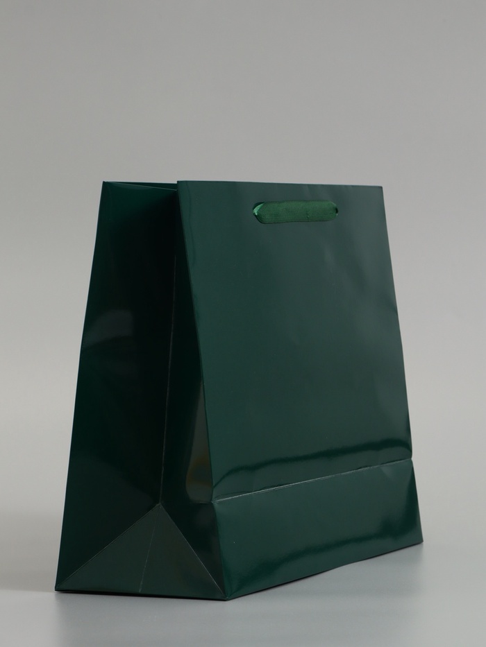 - Горизонтальный пакет с ламинацией: Широкое дно 26×12 см – пакет устойчиво стоит на столе. Ламинированная поверхность не промокает, не пачкается, легко протирается. Изумрудный цвет притягивает взгляд, не выглядит дешёво.
