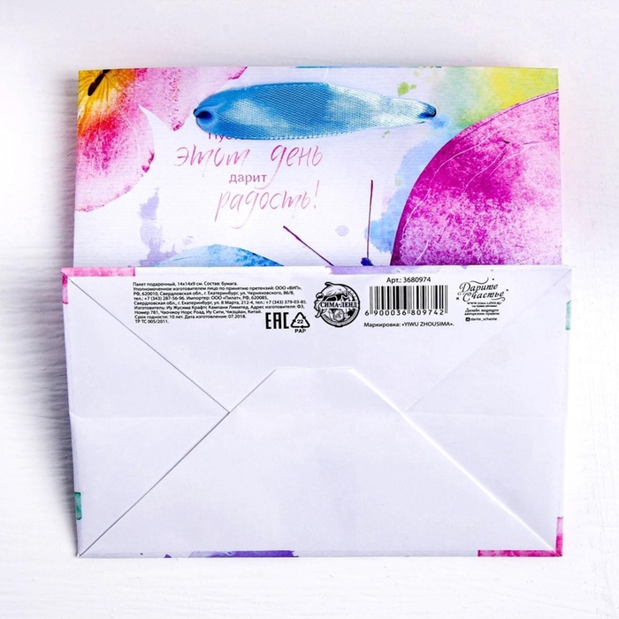 Пакет подарочный ламинированный квадратный, упаковка, «Нежность бабочки», 22×22×11 см
