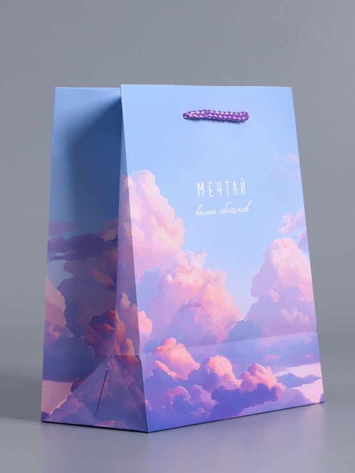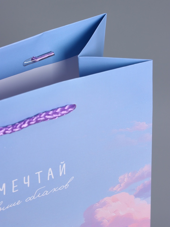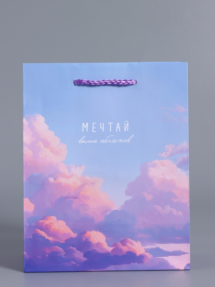 Пакет подарочный ламинированный «Мечтай выше облаков», голубой с сиреневым, 18×22.3×10 см