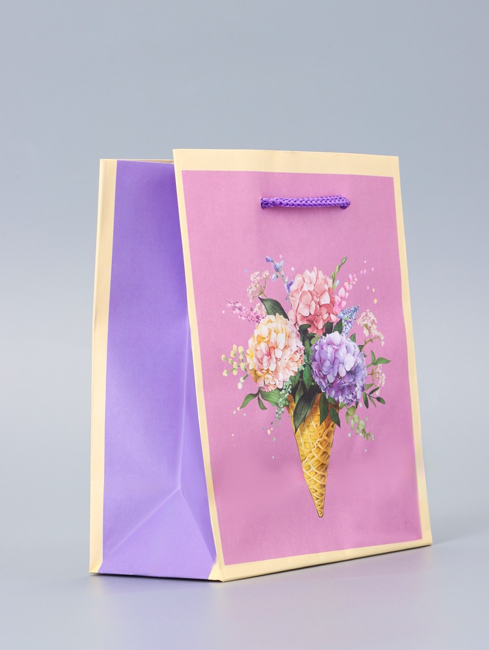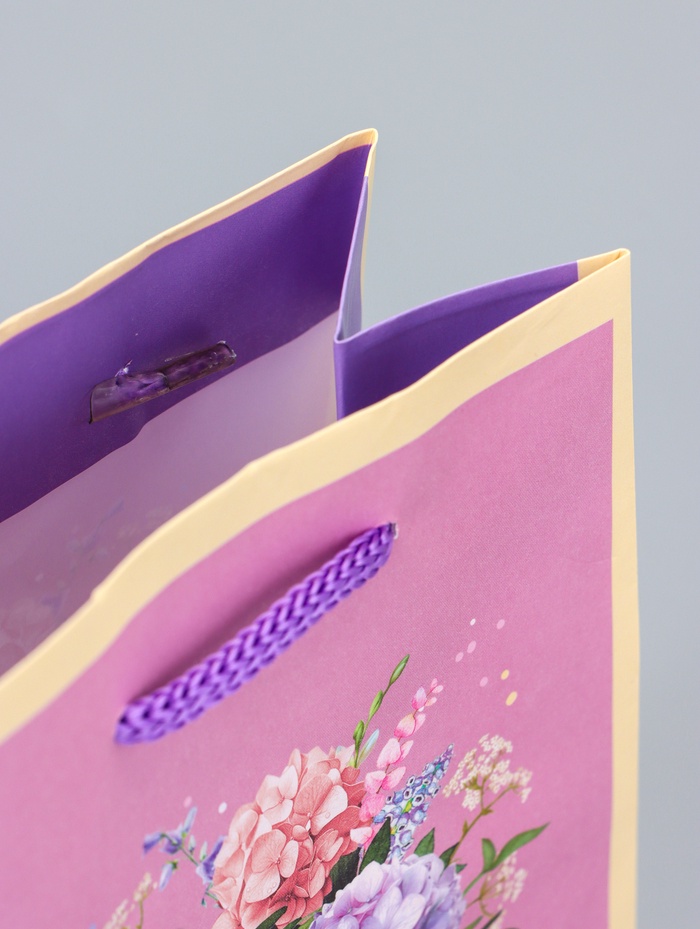 Универсальность применения: Пакет подходит для 8 Марта, дней рождения, 14 Февраля и других праздников. Компактный размер делает его идеальным для цветочных букетов, сладостей и небольших сувениров. Малый подарочный пакет «Нежный букет» – это элегантное решение для подарков с цветочной тематикой.
