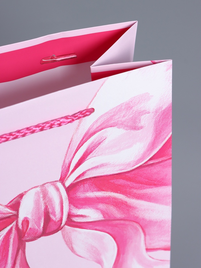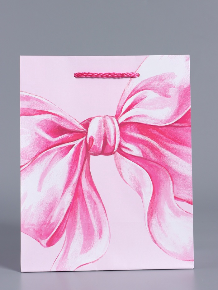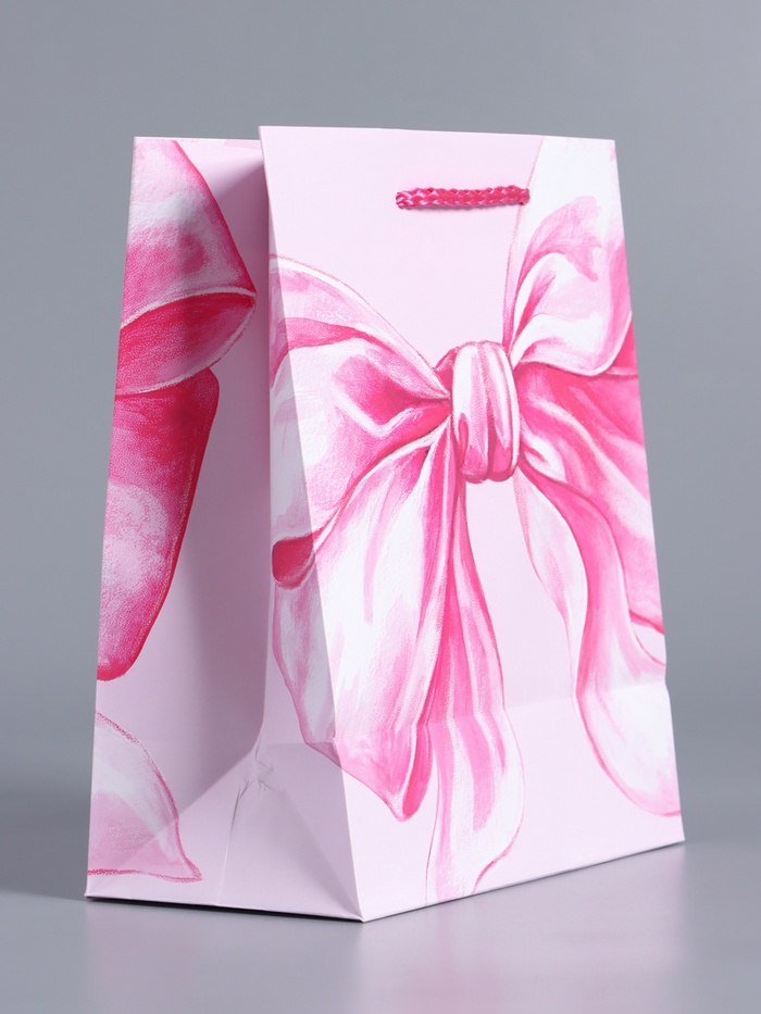 Пакет подарочный ламинированный «Розовый бант», нежно - розовый, 18×22.3×10 см