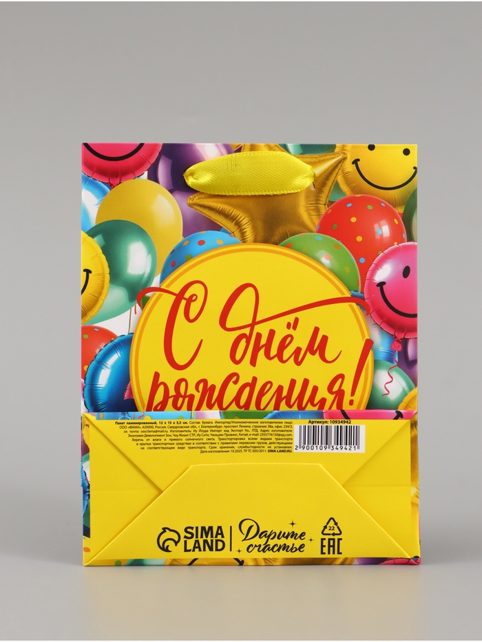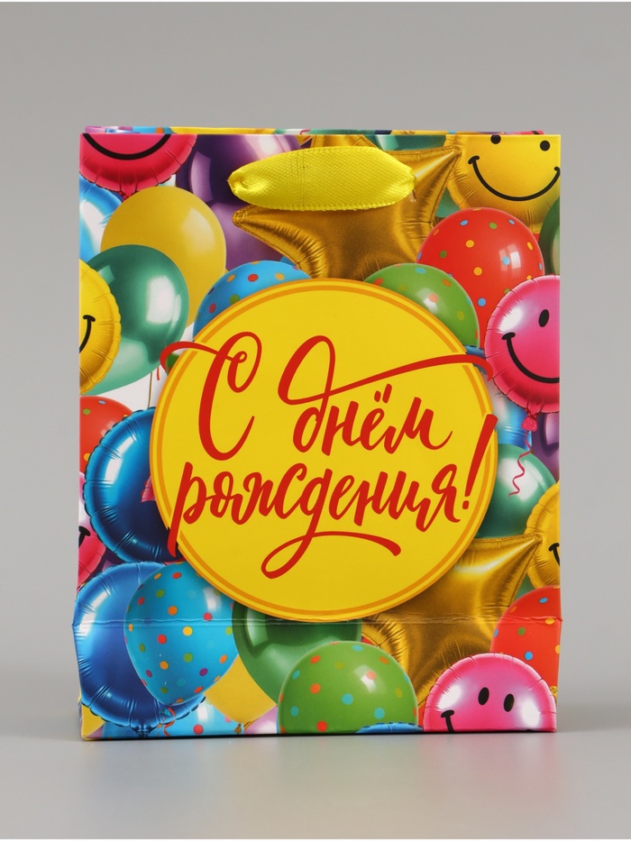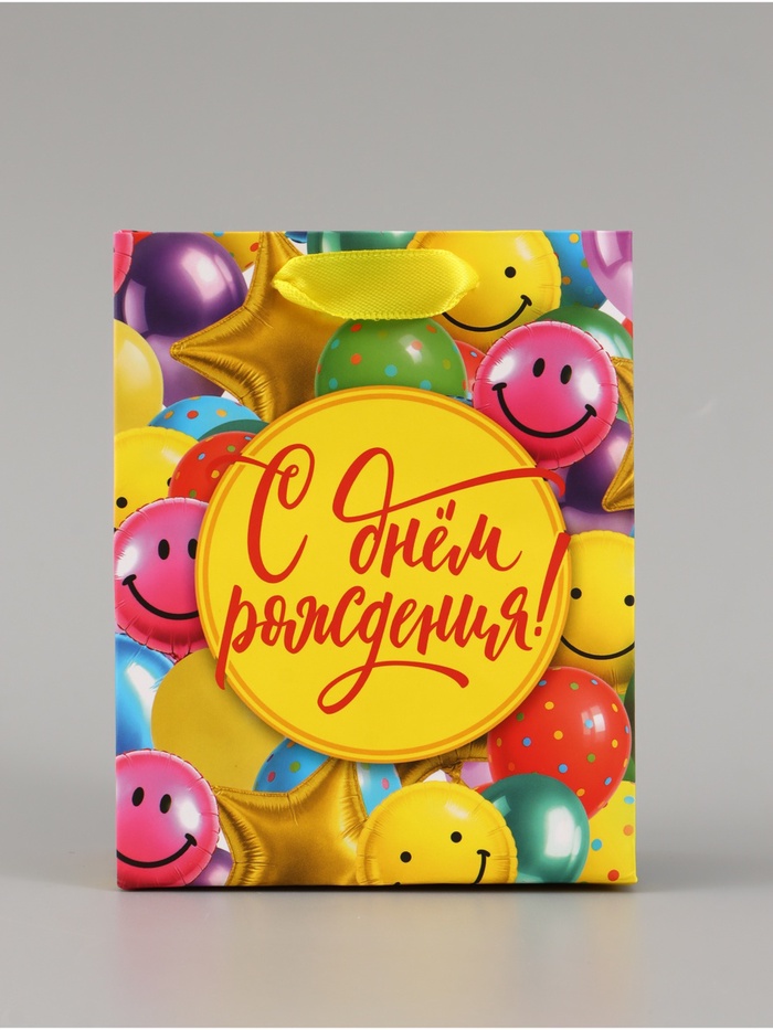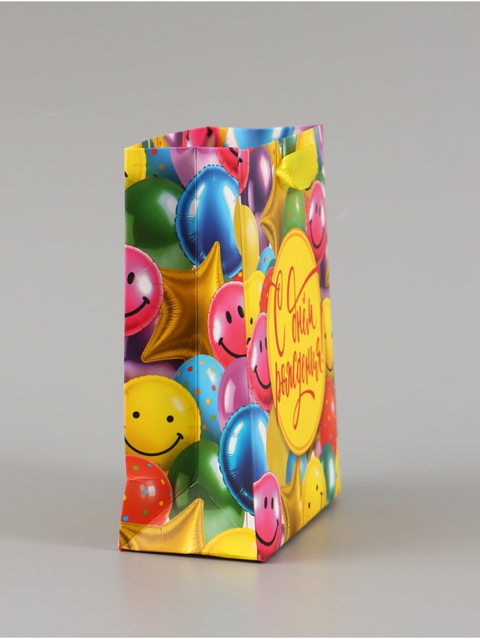 Пакет подарочный ламинированный «С Днём рождения», шары, 12×15×5.5 см, вертикальный
