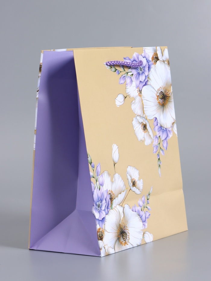 Пакет подарочный ламинированный «Самой нежной», бежевый - сиреневый, 18×22.3×10 см