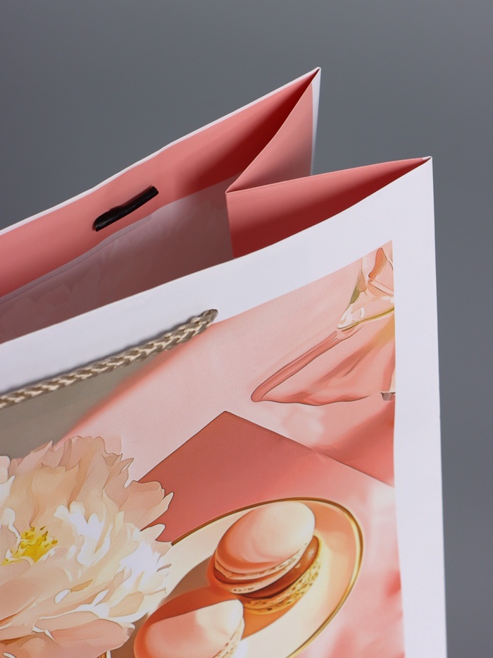 - Прочная, но элегантная упаковка: Плотная бумага 180 г/м² с двухсторонней ламинацией устойчива к сминанию, а глянцевая поверхность добавляет образу праздничный блеск. Пакет выглядит дорого и сохраняет форму даже с объемным подарком внутри.