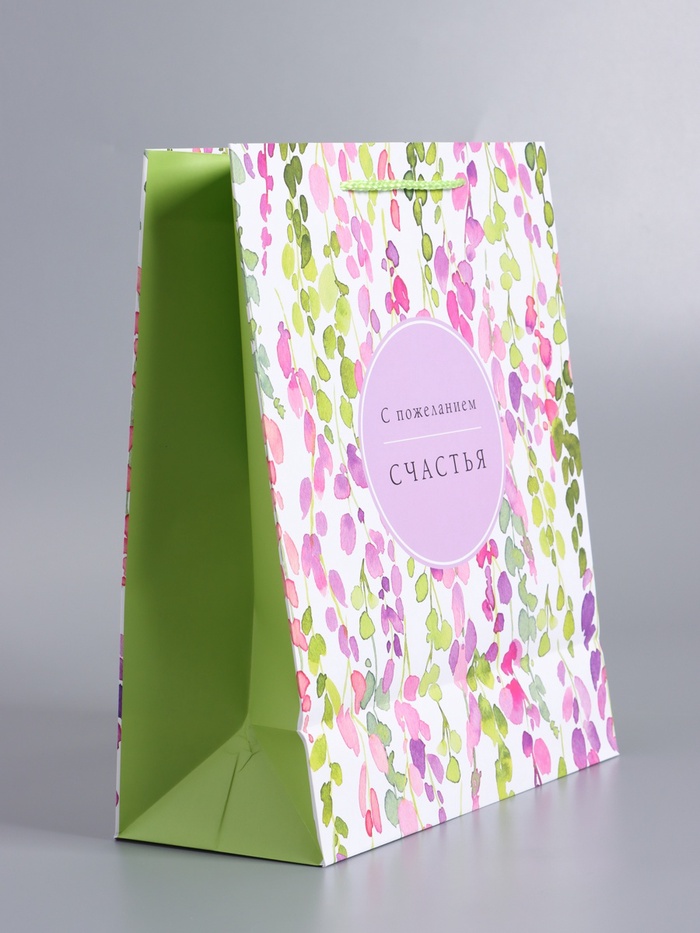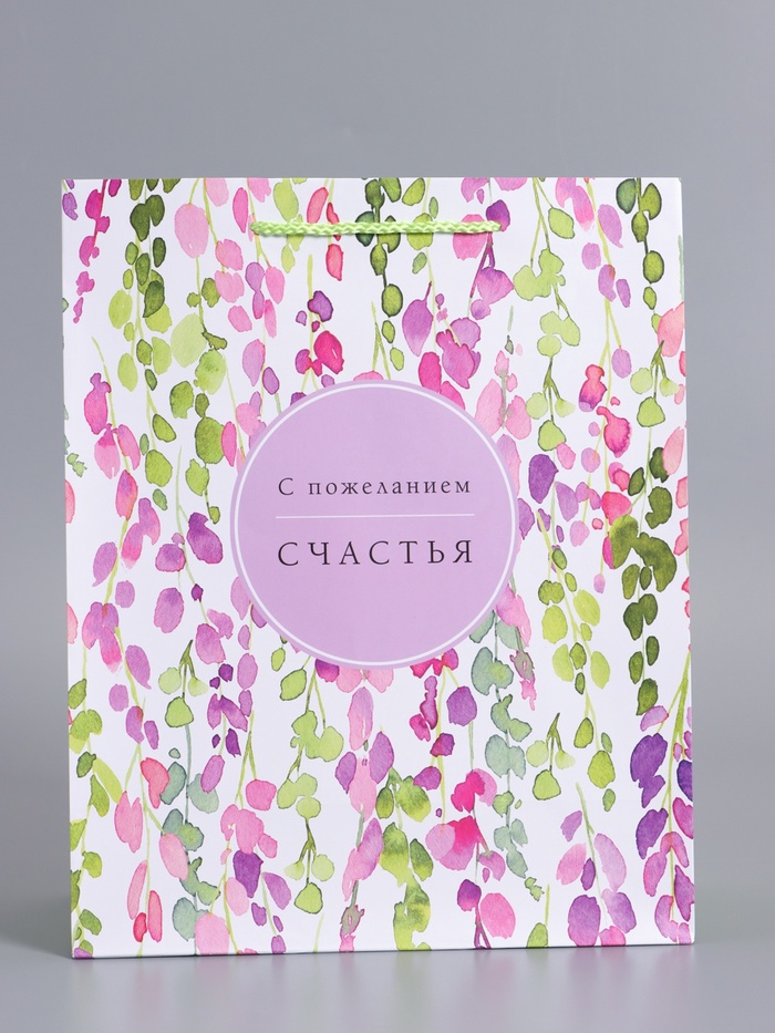 Пакет подарочный ламинированный "Счастья" 26 х 12 х 32 см