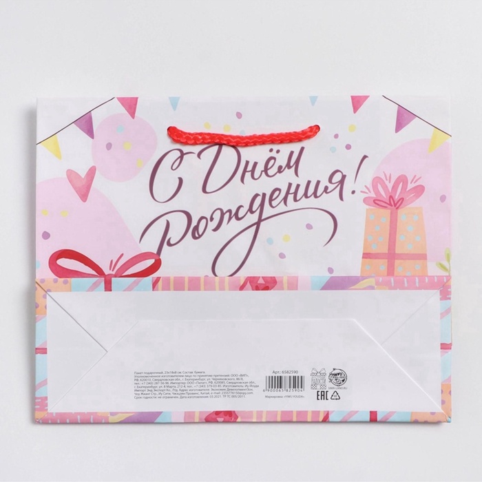 Пакет подарочный ламинированный, упаковка, Happy Birthday, MS 23 х 18 х 8 см