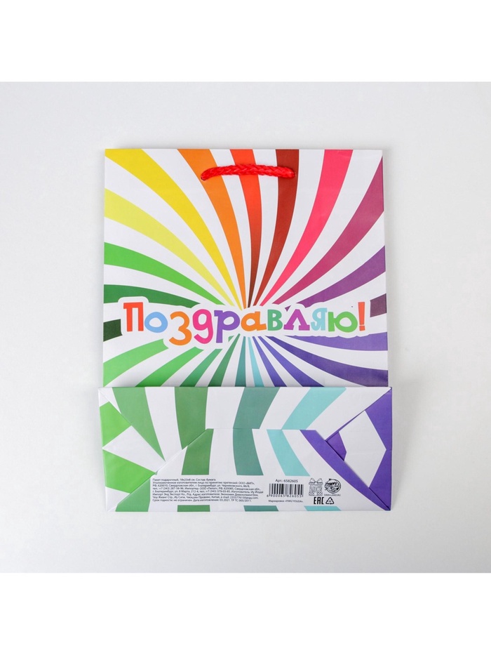 Пакет подарочный ламинированный, упаковка, «Поздравляю», MS 18 х 23 х 8 см