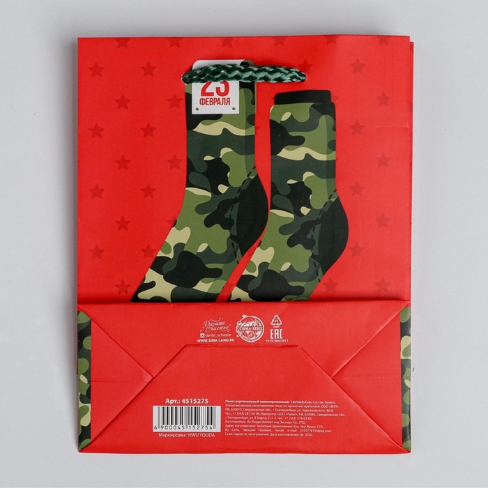 Пакет подарочный ламинированный, упаковка, «С 23 февраля», S 12×15×5.5 см