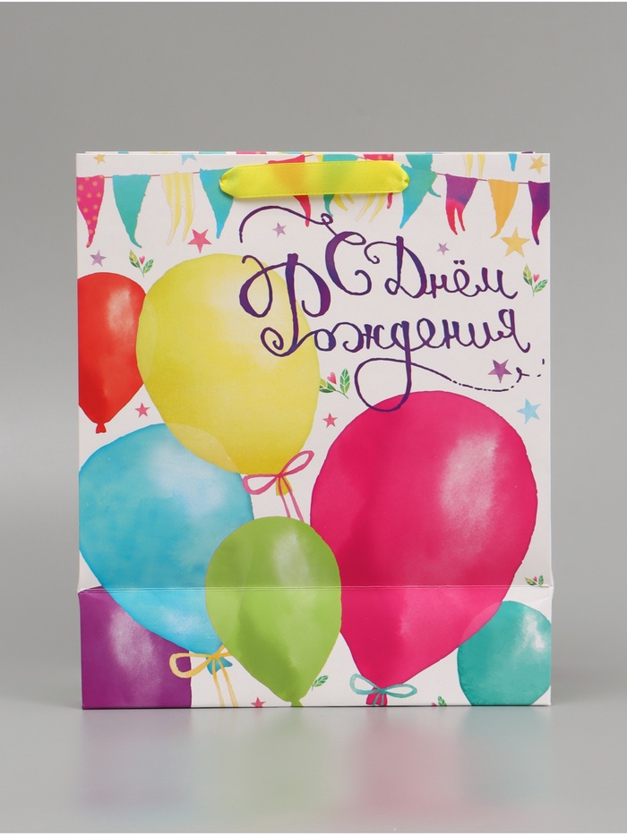 Пакет подарочный ламинированный, упаковка, «С Днём Рождения!», ML 23×27×11.5 см