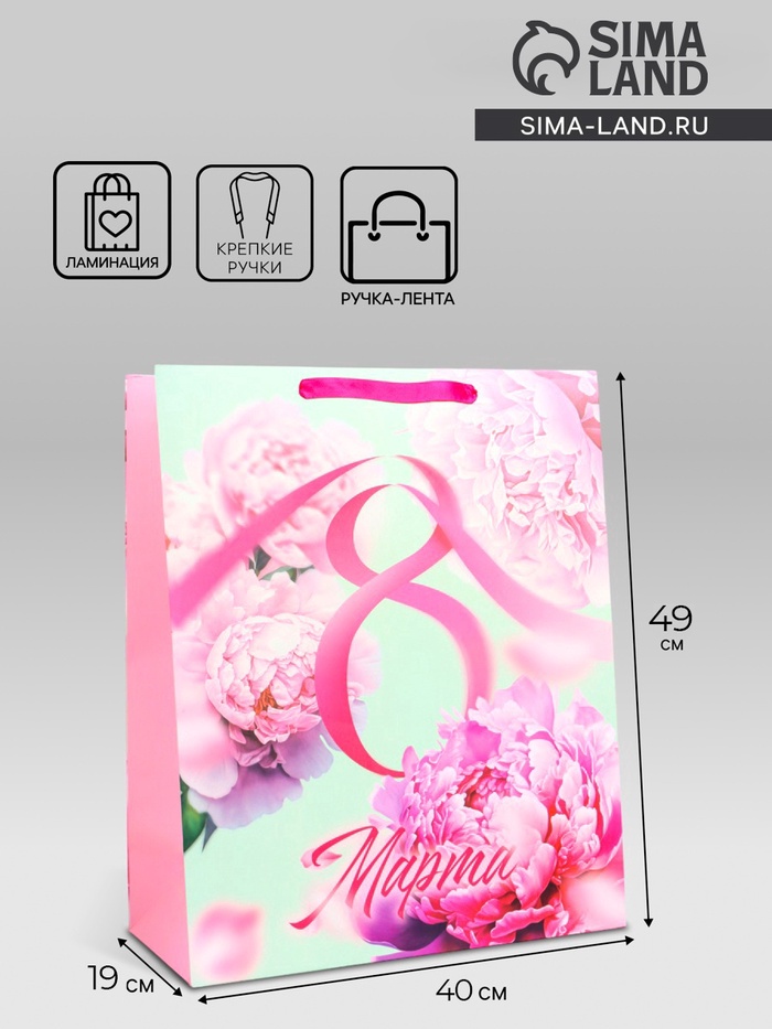 Пакет подарочный ламинированный вертикальный «8 марта», XL 40×49×19 см