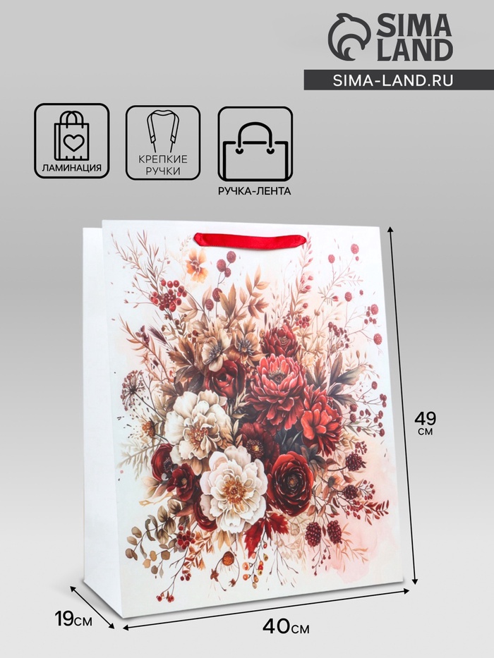 Пакет подарочный ламинированный вертикальный «Бутон», XL 40×49×19 см