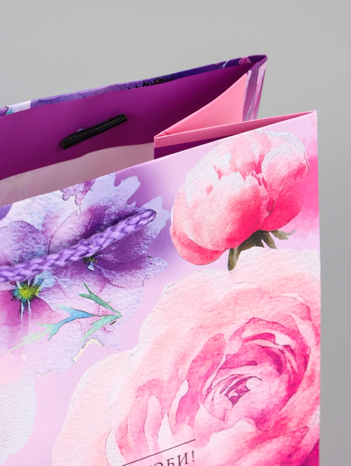 Готовое решение для цветочного подарка. Ламинированный подарочный пакет с цветочным рисунком — это упаковка, которая сама создаёт праздничное настроение. Дизайн с надписями заменяет открытку.