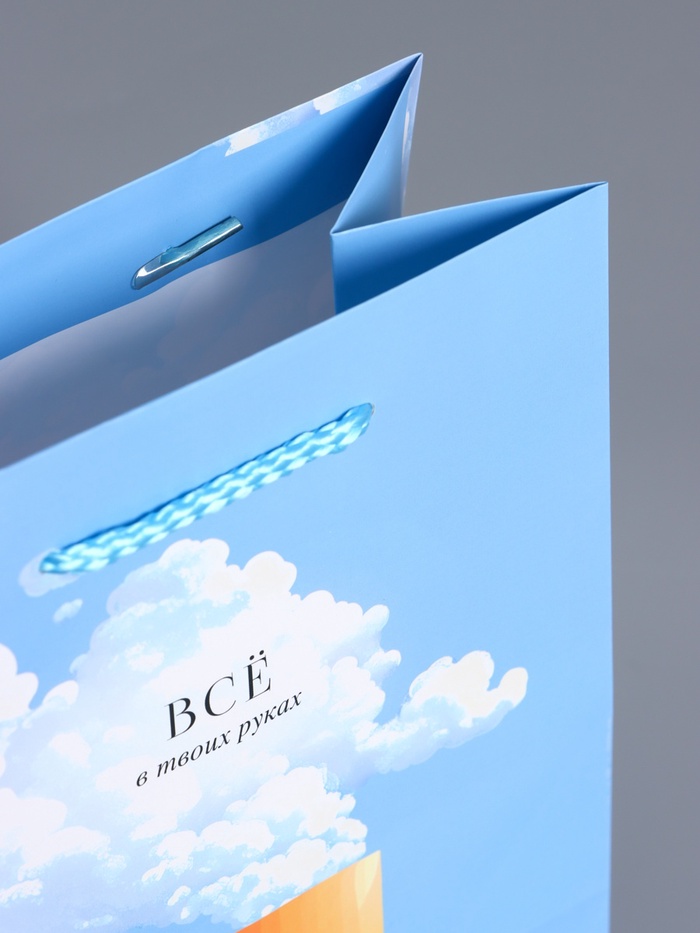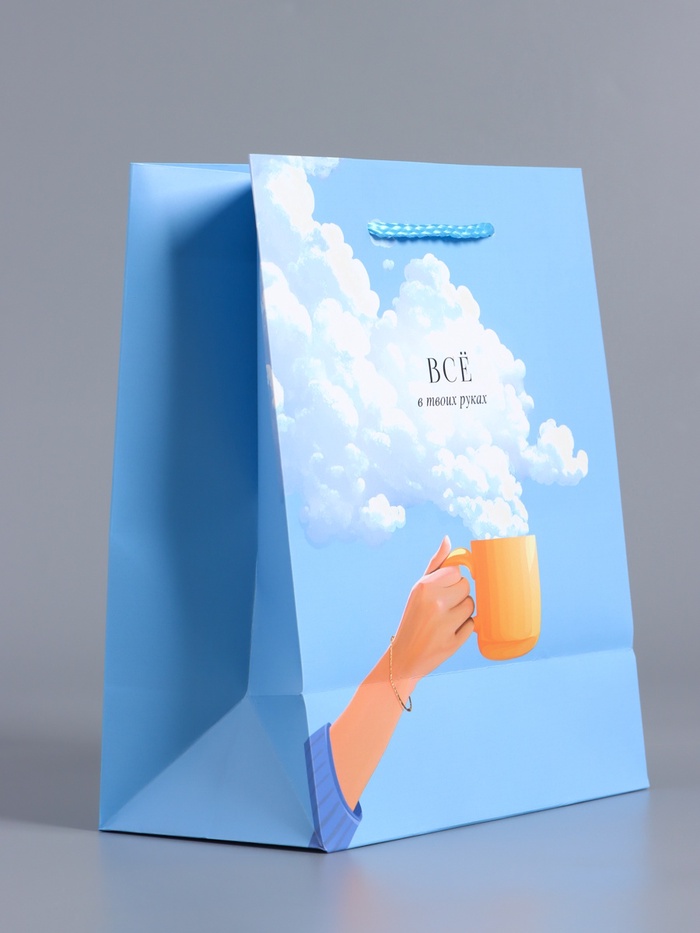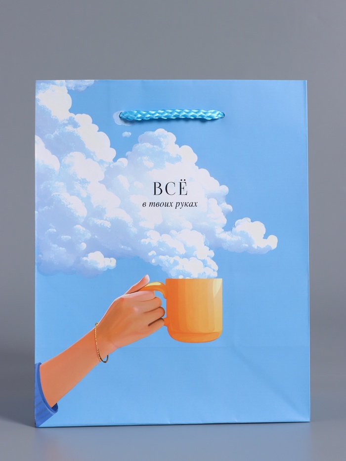 Пакет подарочный ламинированный «Всё в твоих руках», голубой, 18×22.3×10 см