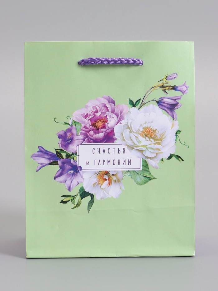 Пакет подарочный ламинированый "Счастья и гармонии" 11,5 х 14,5 х 6,5 см