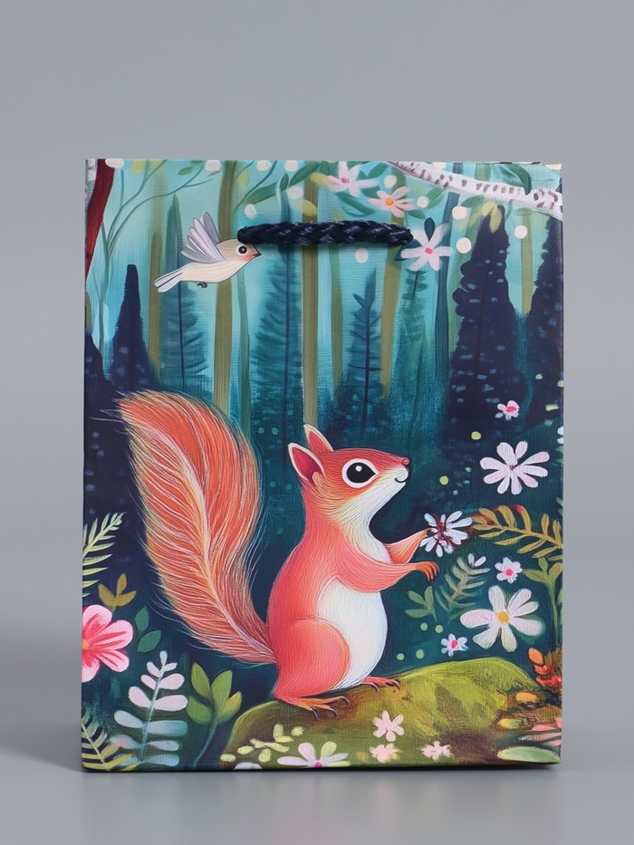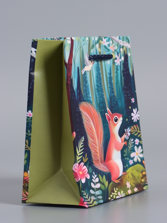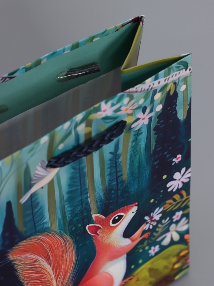 Перенесите волшебство сказки в обычный день. Ламинированный подарочный пакет «Сказочный лес» — это маленькое окно в мир доброй фантазии. Яркие птицы, сказочные животные и дремучие деревья на зелёном фоне превращают упаковку подарка в самостоятельный сюрприз.