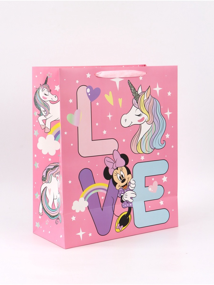 Пакет подарочный Love, 40×49×19 см, упаковка, Минни Маус и Единорог