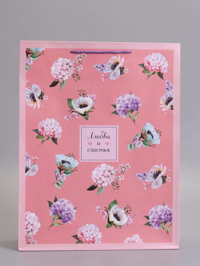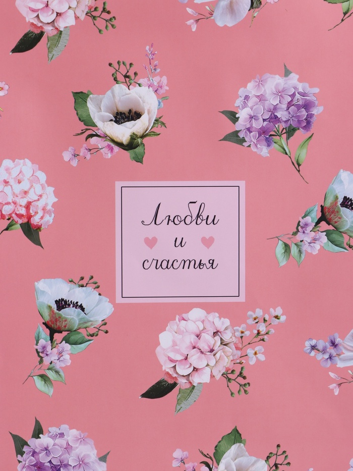Пакет подарочный "Любви и счастья", ламинированный, 33 х 42,5 х 10 см
