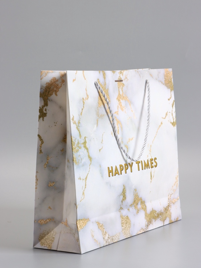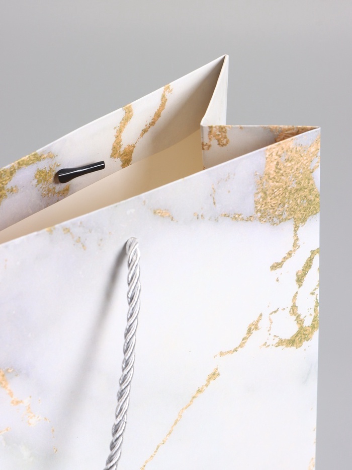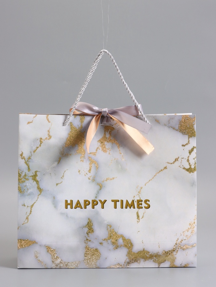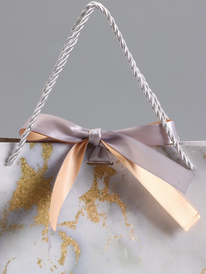 Пакет подарочный "Мрамор" , белый , с бантиком, 35 х 30 х 10 см