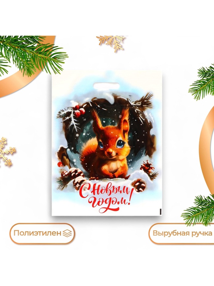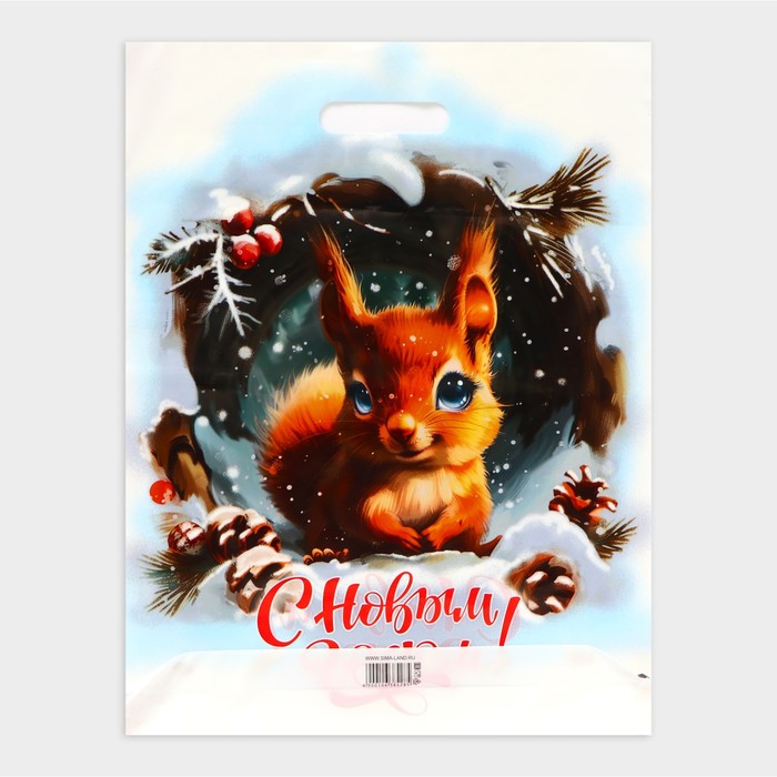 Пакет подарочный новогодний «Белочка с новым годом», полиэтиленовый с вырубной ручкой, 38×47 см