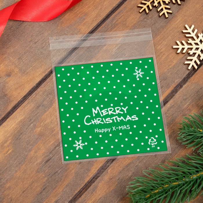 Пакет БОПП с липкой лентой и новогодним дизайном размером 10x10x3 см станет отличным решением для упаковки подарков и сувениров.