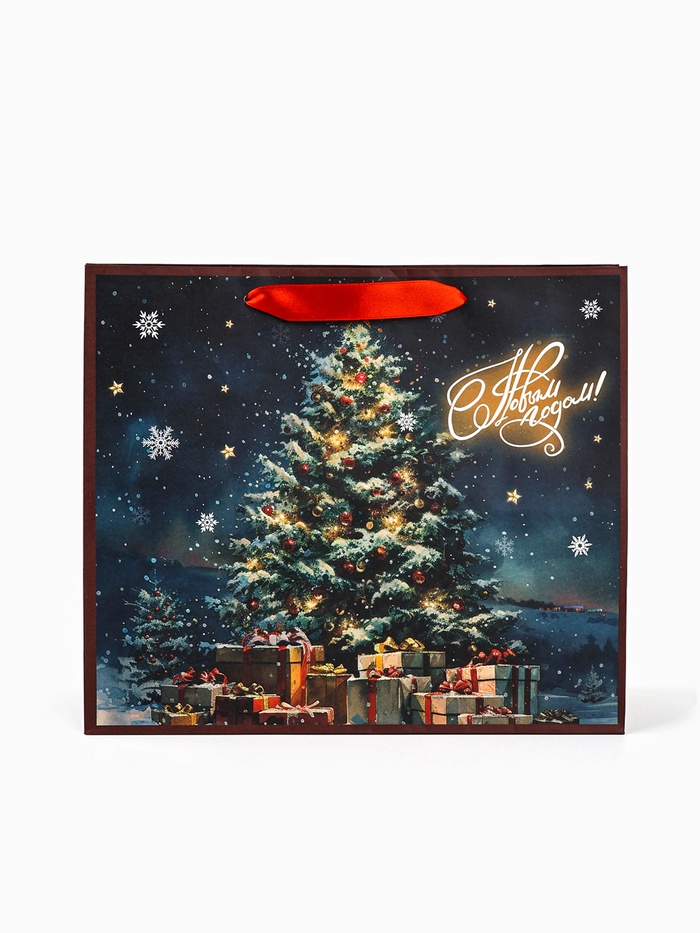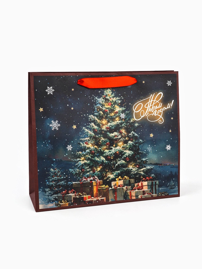 Пакет подарочный новогодний бумажный, "Ёлка", 31 х 26 х 11 см.