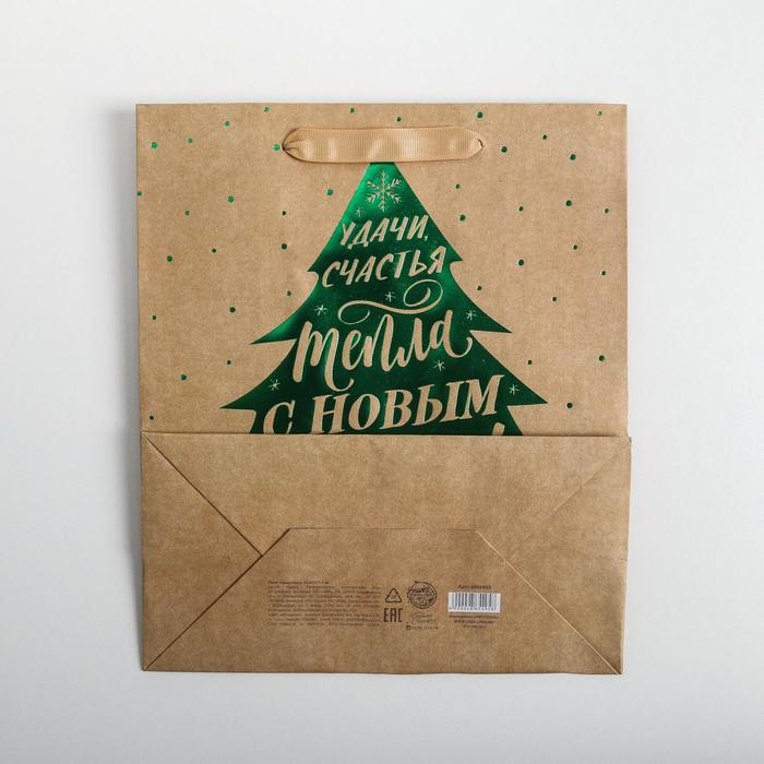 Пакет подарочный новогодний крафтовый «Ёлочка нарядная», ML 23×27×11.5 см