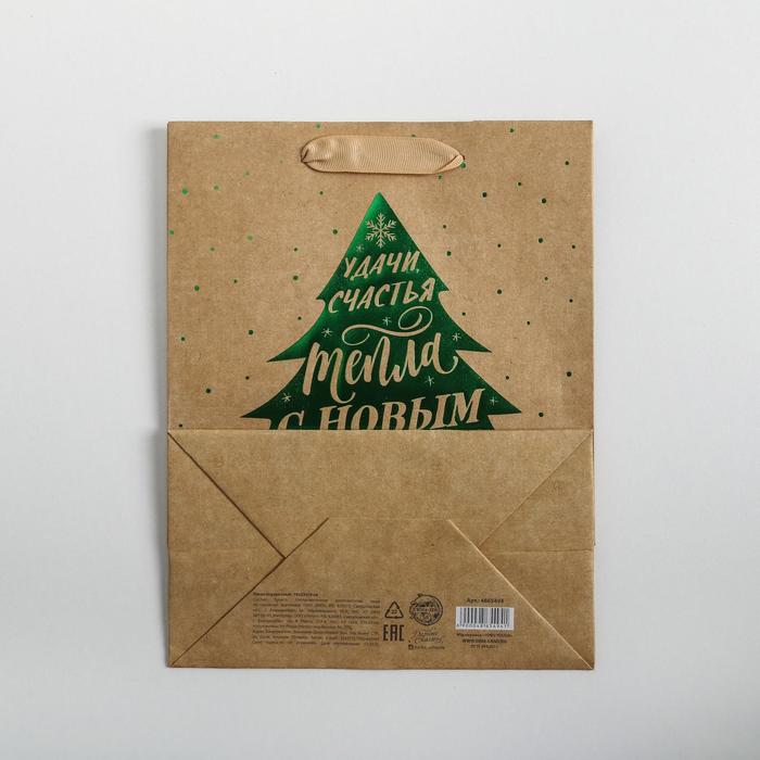Пакет подарочный новогодний крафтовый «Ёлочка нарядная», MS 18 х 23 х 10 см