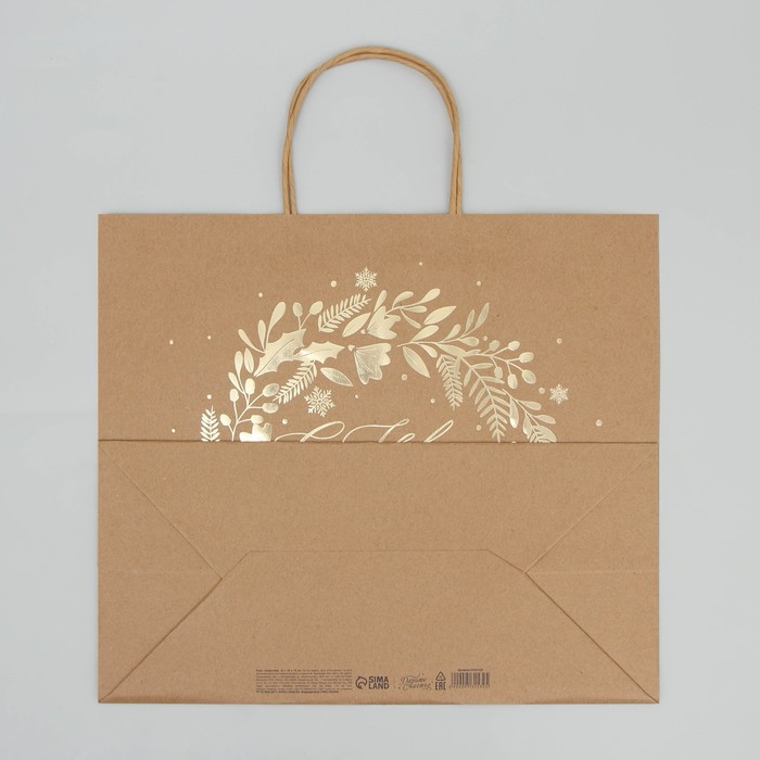 Пакет подарочный новогодний крафтовый «С Новым годом», 32×28×15 см