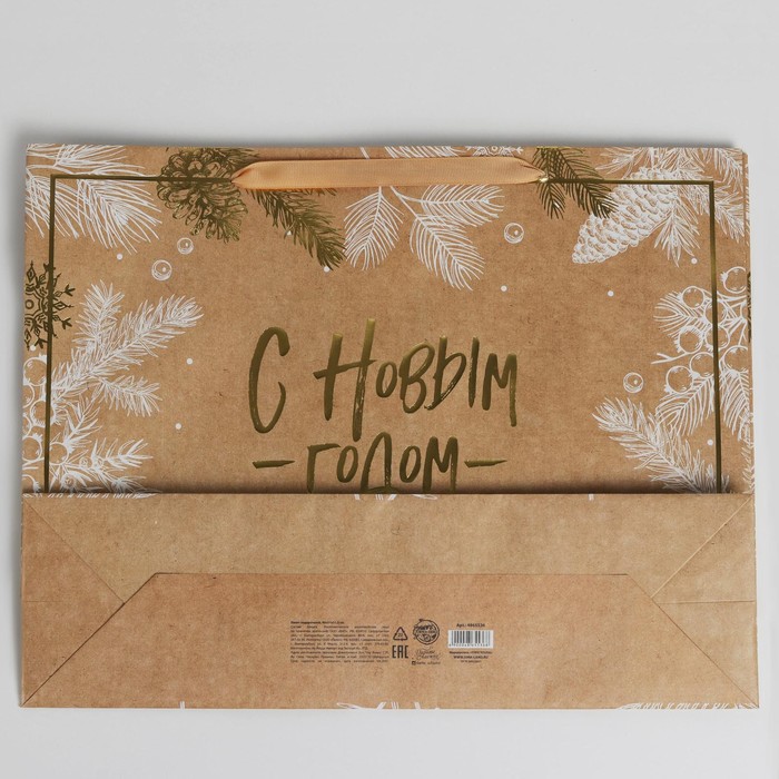 Пакет подарочный новогодний крафтовый «С Новым годом», L 40×31×11.5 см