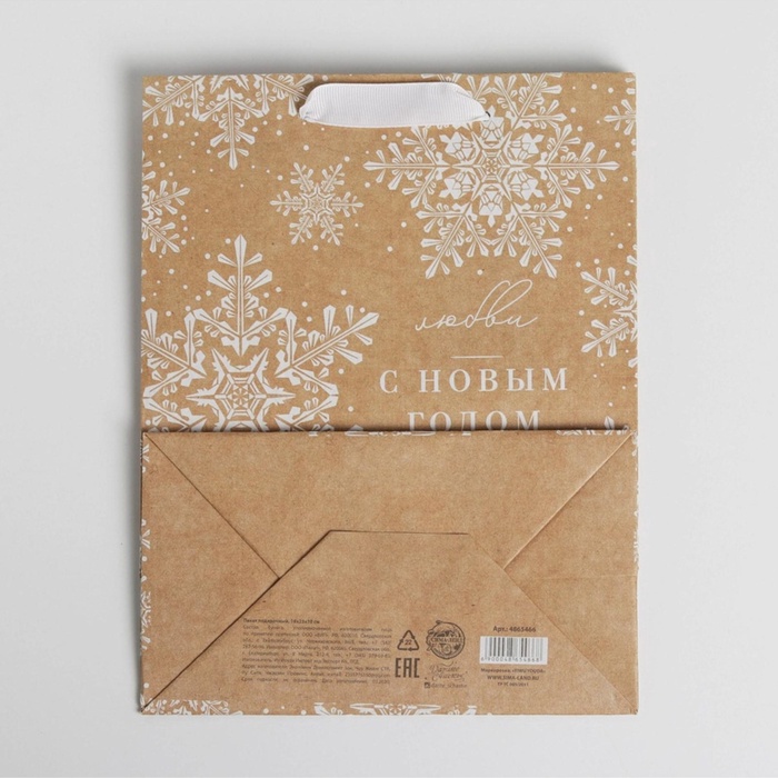Пакет подарочный новогодний крафтовый «С Новым годом», MS 18×23×10 см