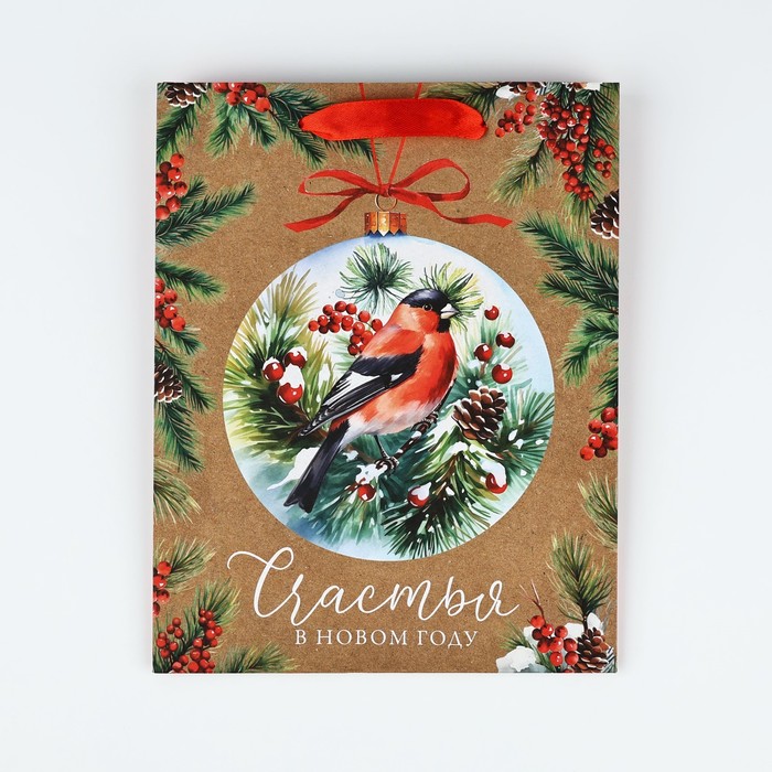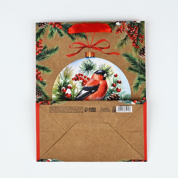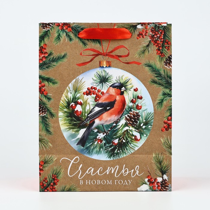 Пакет подарочный новогодний крафтовый «Счастья в Новом году», MS 18×23×10 см