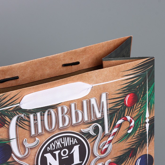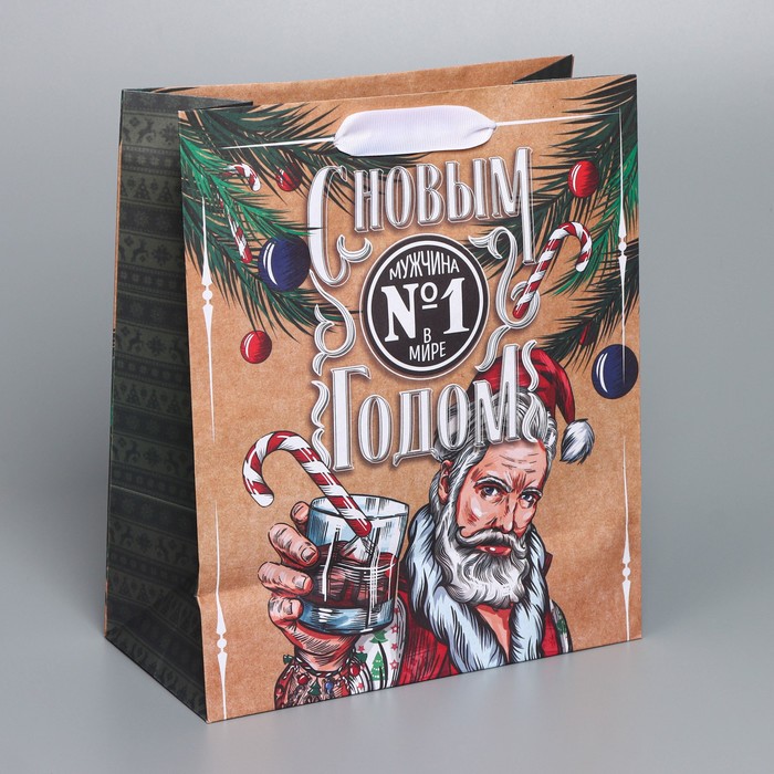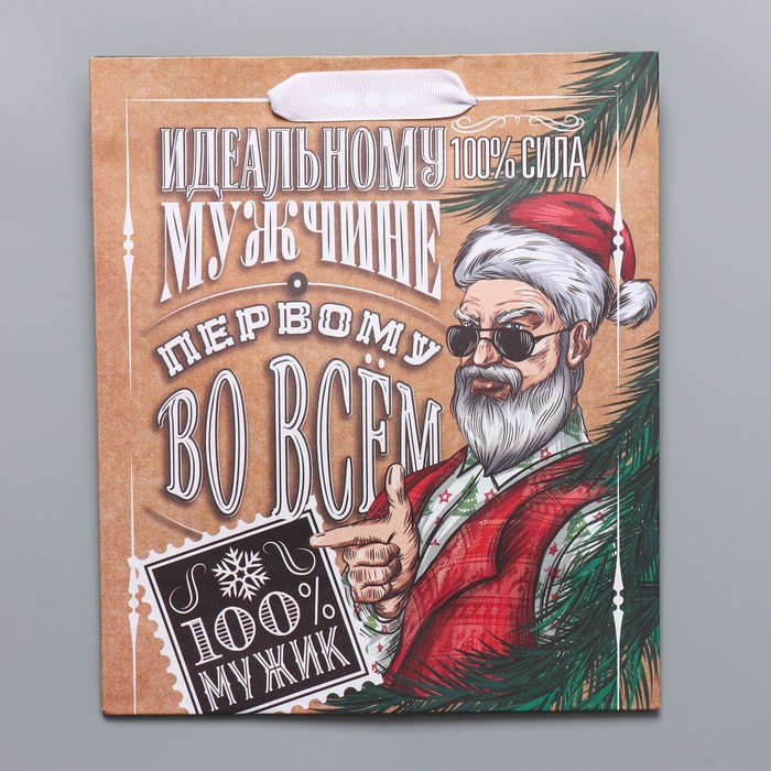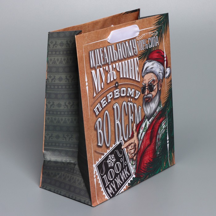 Пакет подарочный новогодний крафтовый вертикальный «Идеальному мужчине», ML 23 х 27 х 11,5 см