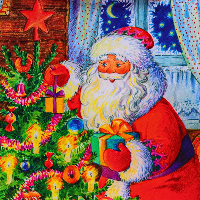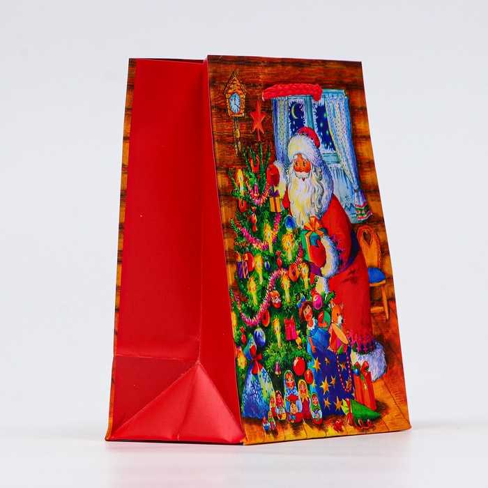 Пакет подарочный новогодний ламинированный «Дед мороз у ёлки», 11.5×14.5×6.5 см