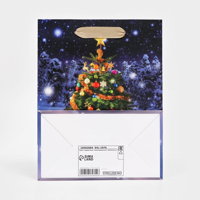 Подарочный пакет, ламинированный и новогодний, размером 18 х 23 х 10 см — это идеальный выбор для упаковки ваших праздничных сюрпризов. Этот пакет сочетает в себе практичность и элегантный дизайн, который украсит любой подарок и создаст особую атмосферу волшебства и радости.