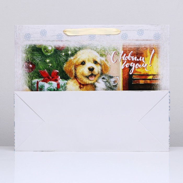 Стильный новогодний пакет с ламинацией используют как упаковку для подарка. Благодаря своему оригинальному дизайну и привлекательному внешнему виду он создаст праздничное настроение получателю и не оставит его равнодушным.