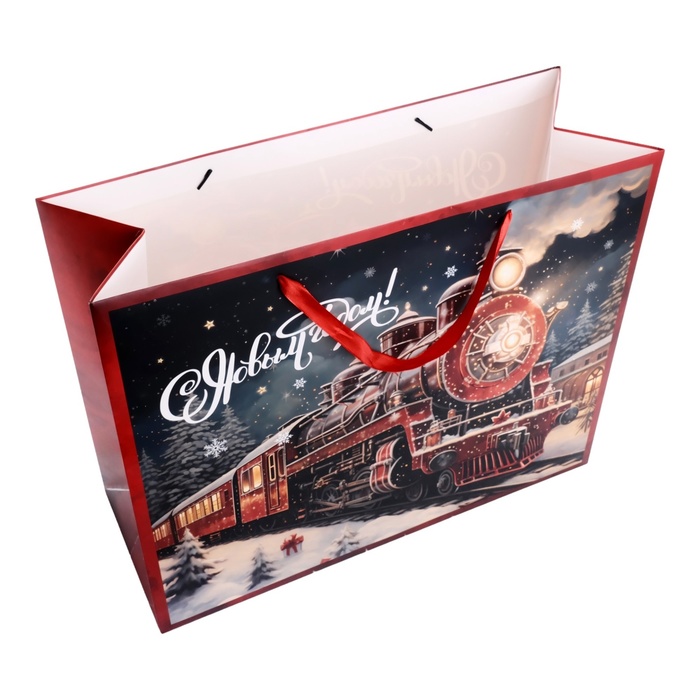Яркий и красочный дизайн с новогодними мотивами придает пакету праздничный и жизнерадостный вид. Это делает его идеальным выбором для использования в качестве подарочной упаковки на различные зимние праздники, такие как Новый год или Рождество.