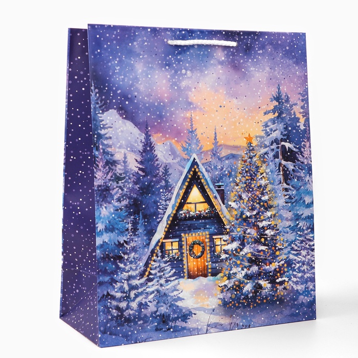 Пакет подарочный новогодний ламинированный «Изба в лесу», 26×32×12 см