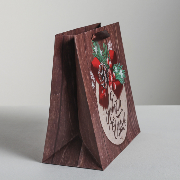 Пакет подарочный новогодний, с тиснением «Счастливого Нового года», люкс, 18×22.3×10 см
