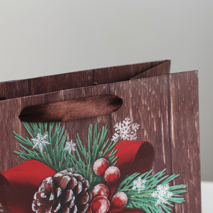 Пакет подарочный новогодний ламинированный с тиснением «Уют», люкс, 18×22.3×10 см