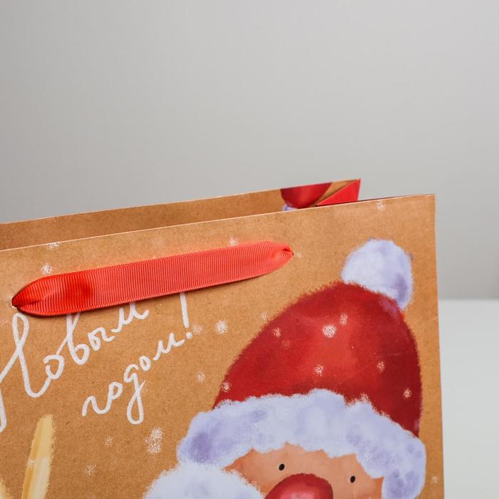 Пакет подарочный новогодний ламинированный квадратный «Весёлая компания», 30×30×12 см