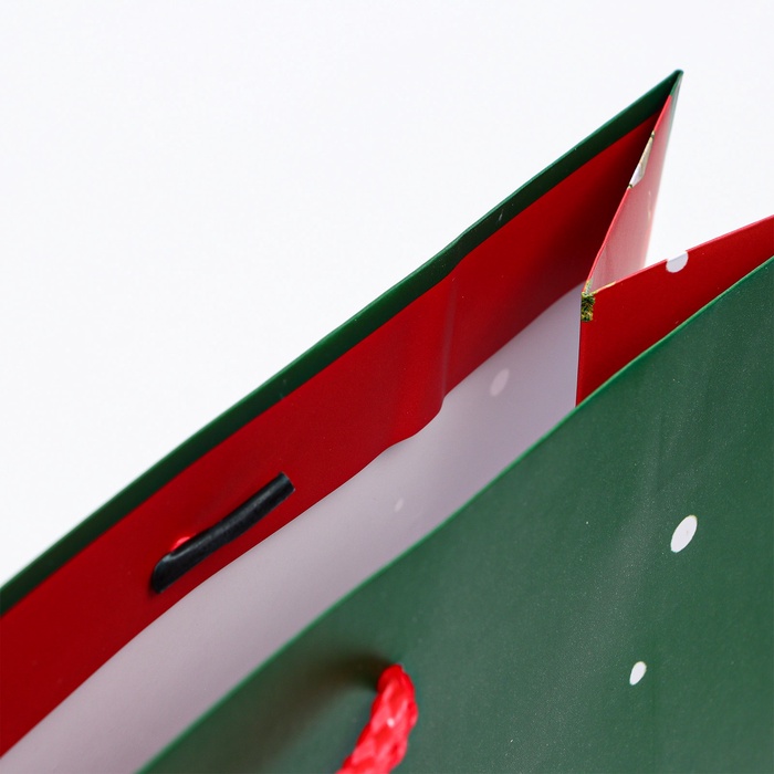 Пакет имеет плотную структуру и приятную на ощупь поверхность, что делает его удобным в использовании. Он украшен яркими новогодними узорами и изображениями, которые создают атмосферу праздника и волшебства.