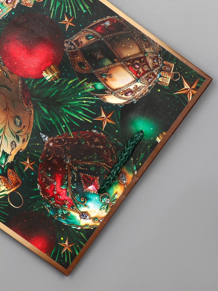 - Сдержанный праздничный дизайн: Сочетание классических новогодних цветов и символов делает пакет уместным для подарка как женщине, так и мужчине. Дизайн подходит для корпоративных и семейных праздников.