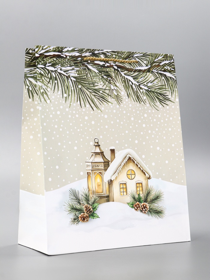 В каждом подарке живет новогоднее тепло! Большой подарочный пакет «Зимний домик» — это упаковка с уютным сюжетным дизайном. Ламинированная поверхность и теплый бежевый фон создают атмосферу домашнего праздника.