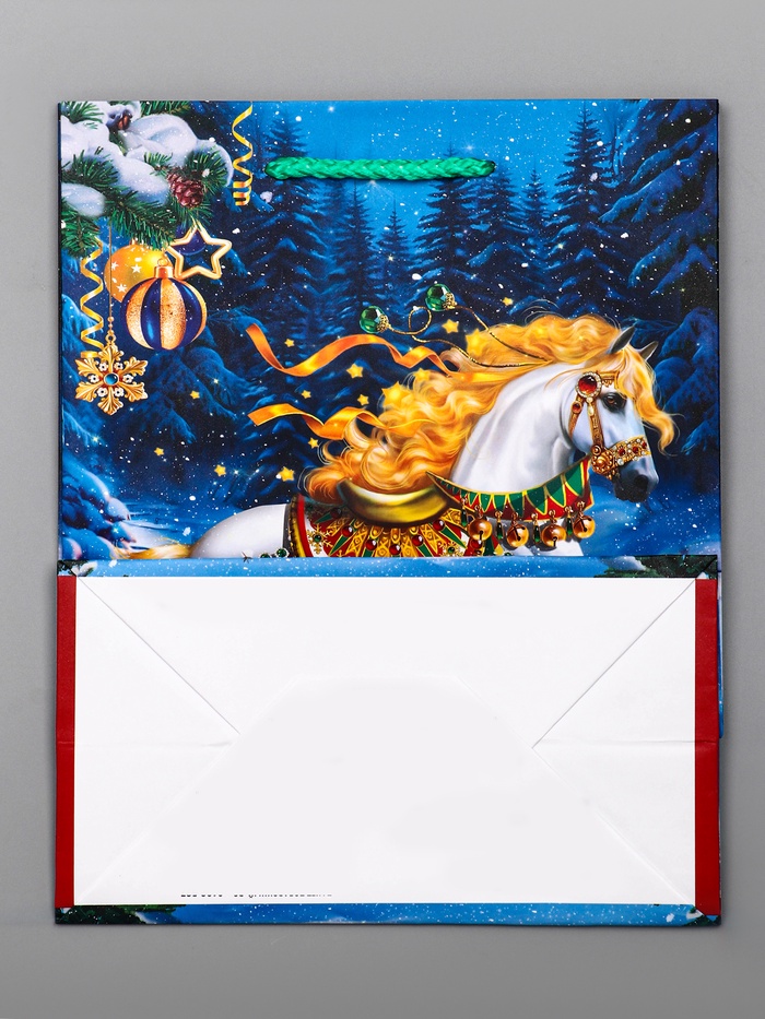 Встречайте год Лошади с праздничным настроением! Подарочный пакет «Новогодний конь» — это ламинированная упаковка для новогодних презентов. Яркое изображение праздничного коня создаёт атмосферу волшебства и зимней сказки.