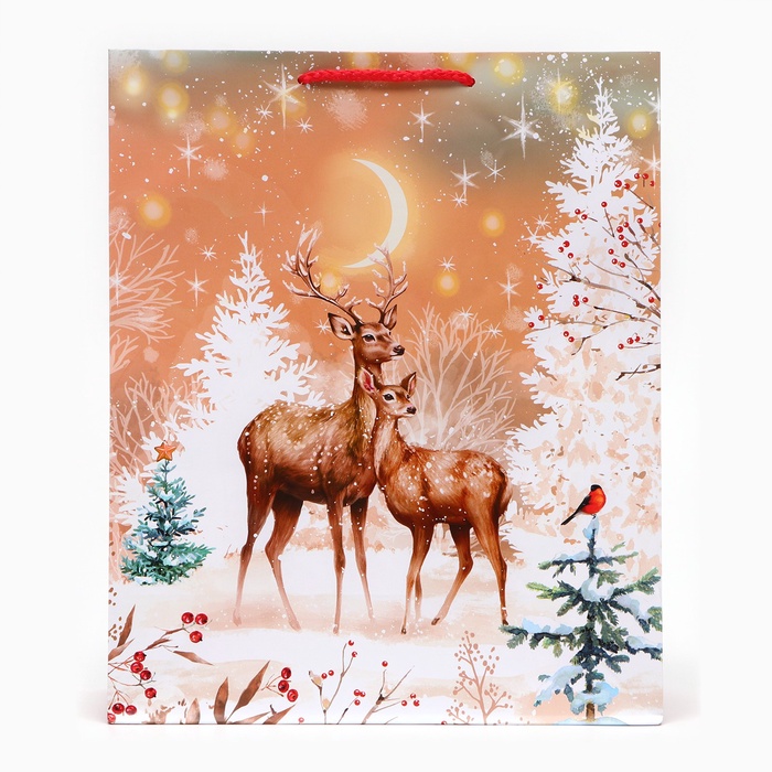 Пакет подарочный новогодний ламинированный «Олени», 26×32×12 см