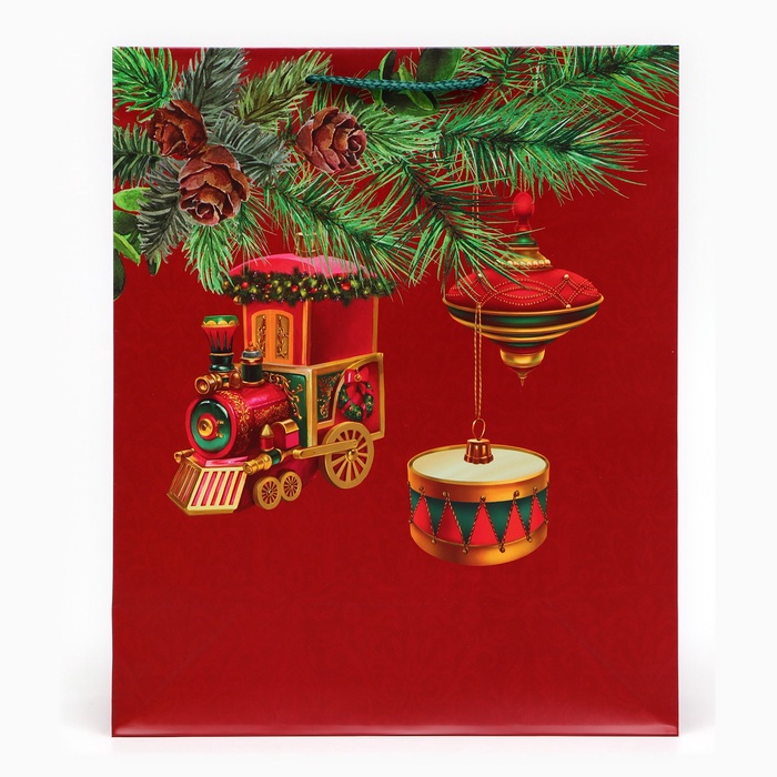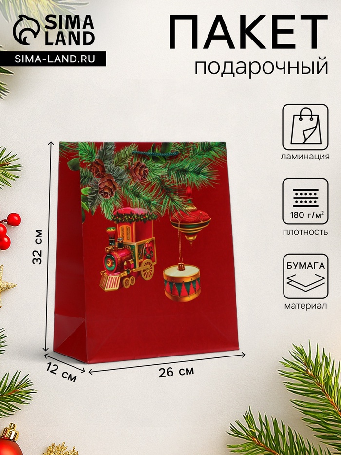 Пакет подарочный новогодний ламинированный «Паровоз», 26×32×12 см